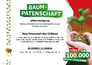 Wir haben eine Baumpatenschaft über zehn Bäume übernommen – ein kleiner, aber wirkungsvoller Beitrag zur nachhaltigen Aufforstung in Thüringen. Unser Zertifikat zeigt: Die Patenschaft schafft neuen Lebensraum, wandelt CO₂ in frische Luft um und trägt dazu bei, die Artenvielfalt für kommende Generationen zu erhalten.